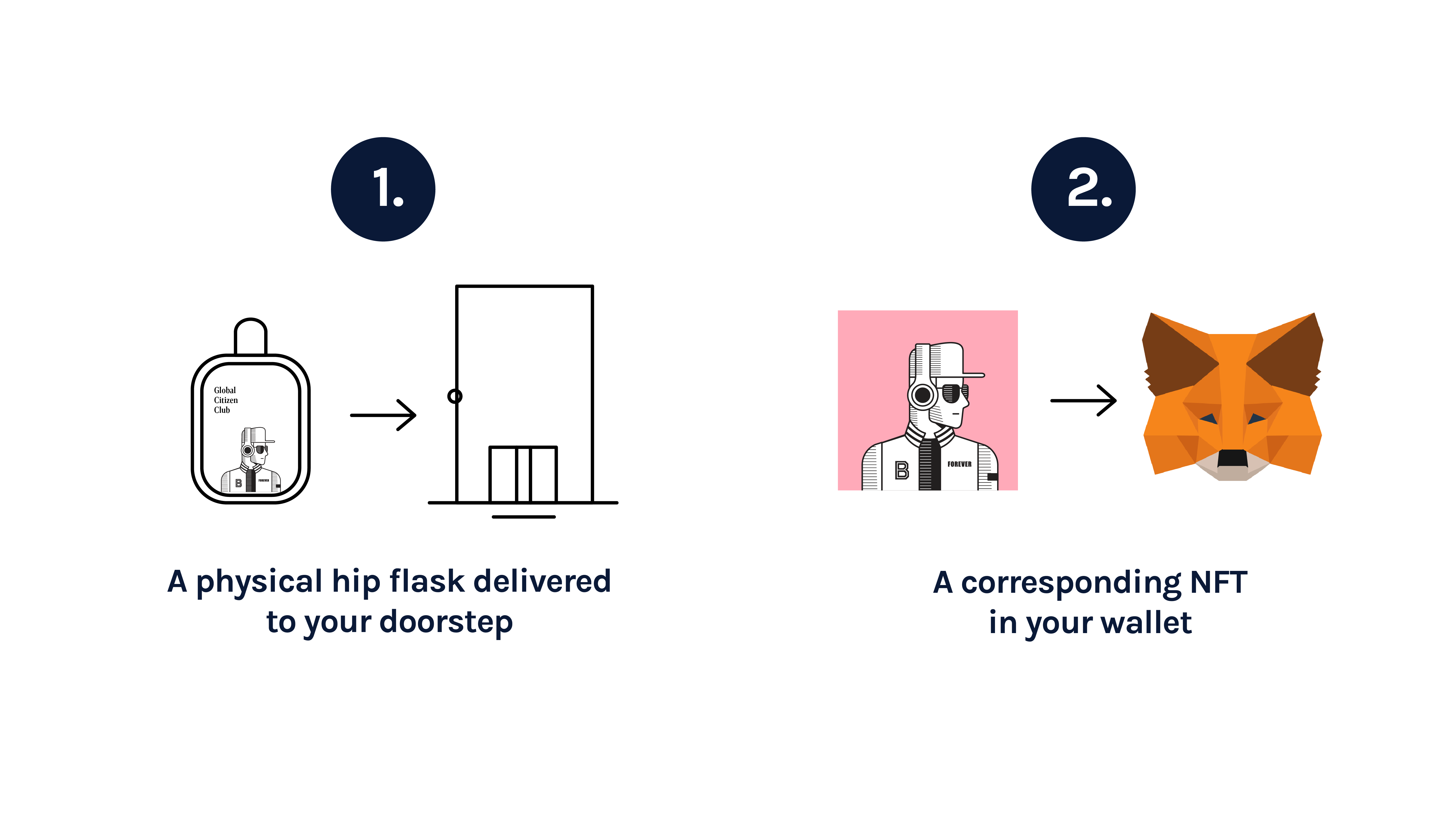 Each flask is unique, hence no two hip flasks are the same. When you redeem your RNFT, you will receive two things: